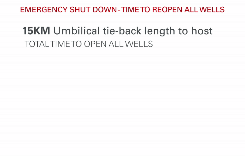 One of the standout features of EcoStar is its consistent performance, regardless of the umbilical length. Whether the umbilical is 15km or 50km, EcoStar operates with the same efficiency due to the speed of electricity, unlike conventional systems that rely on compressible fluids. This consistency provides operators with more predictability in managing shut-in times, enhancing overall operational efficiency.